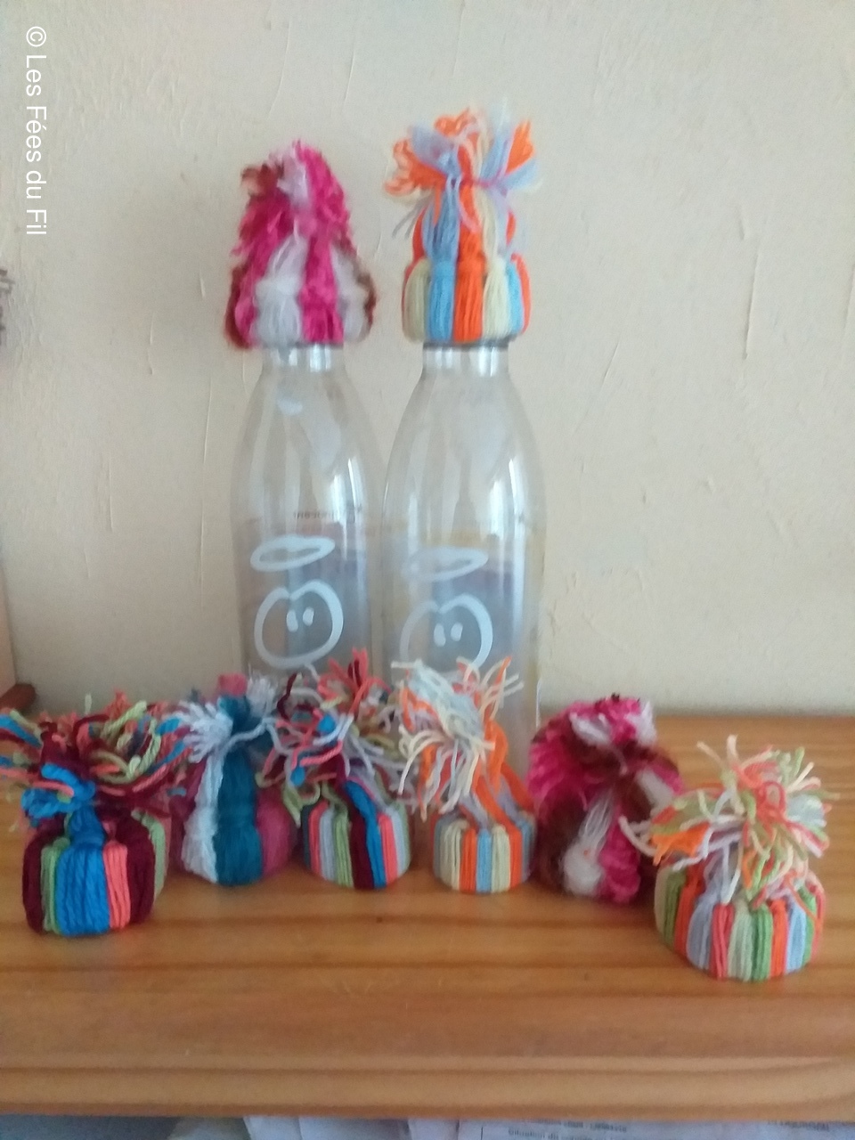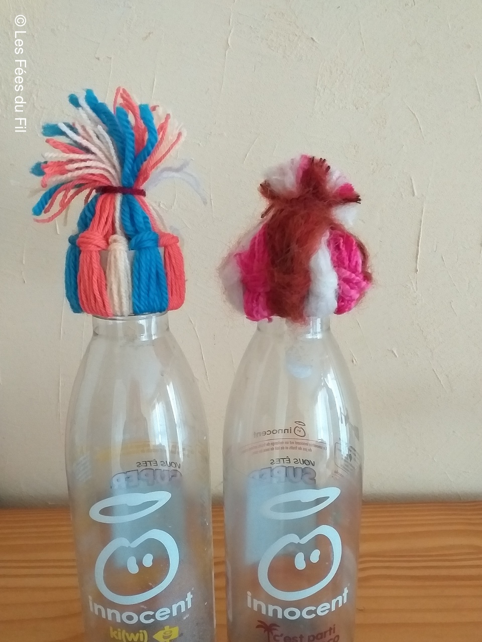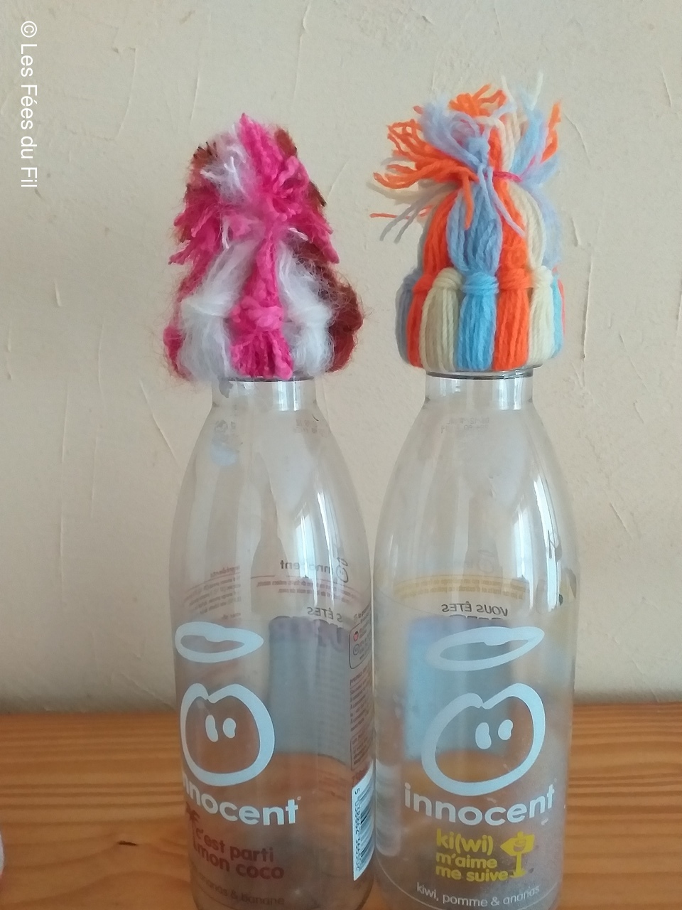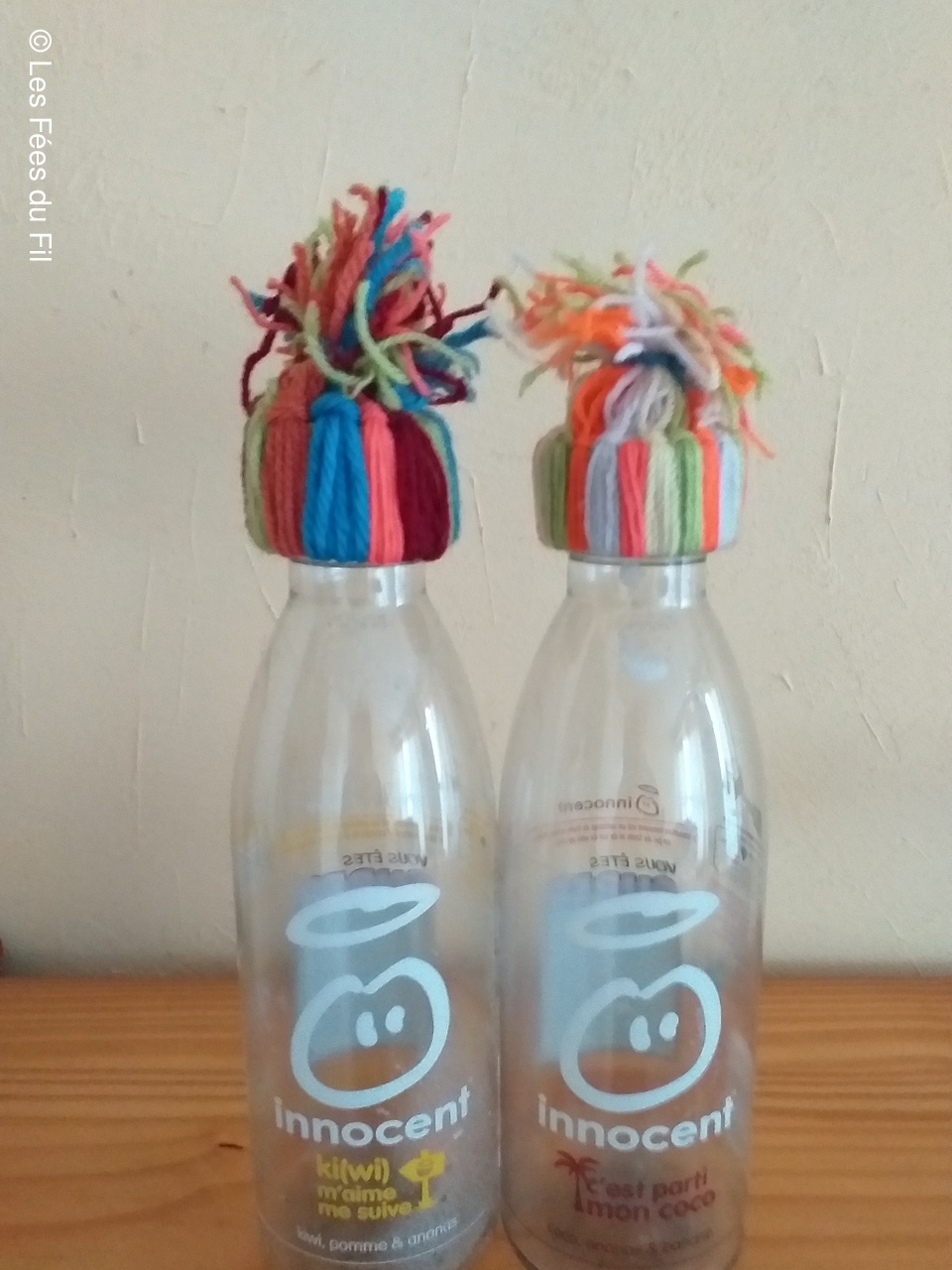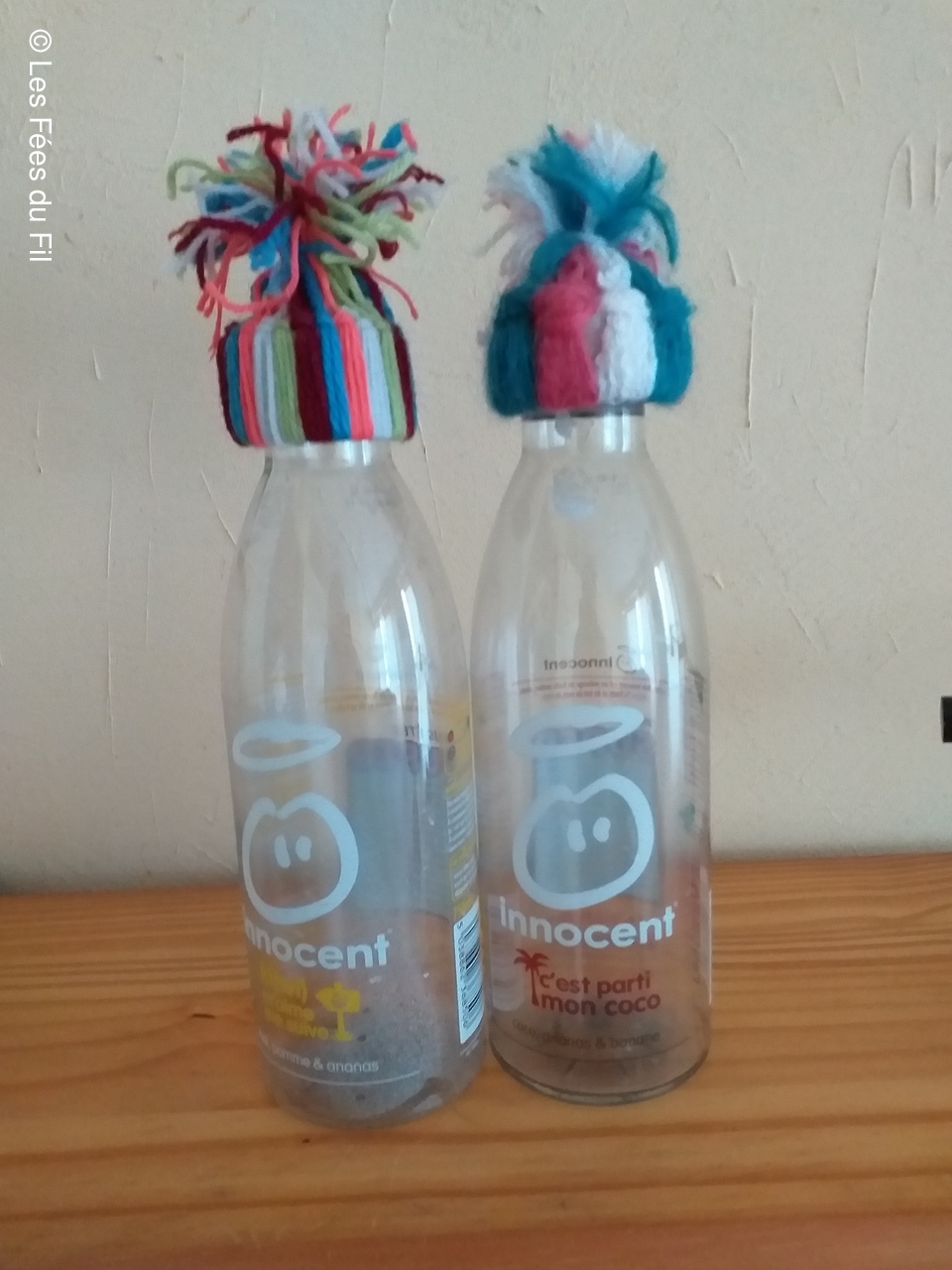 Confection de mini-bonnets qui seront apposés sur les bouteilles de smothies de la marque Innocent. Chaque bouteille vendue, coiffée d'un petit bonnet génére 0.20 centimes à l'association "Les petits frères des pauvres"