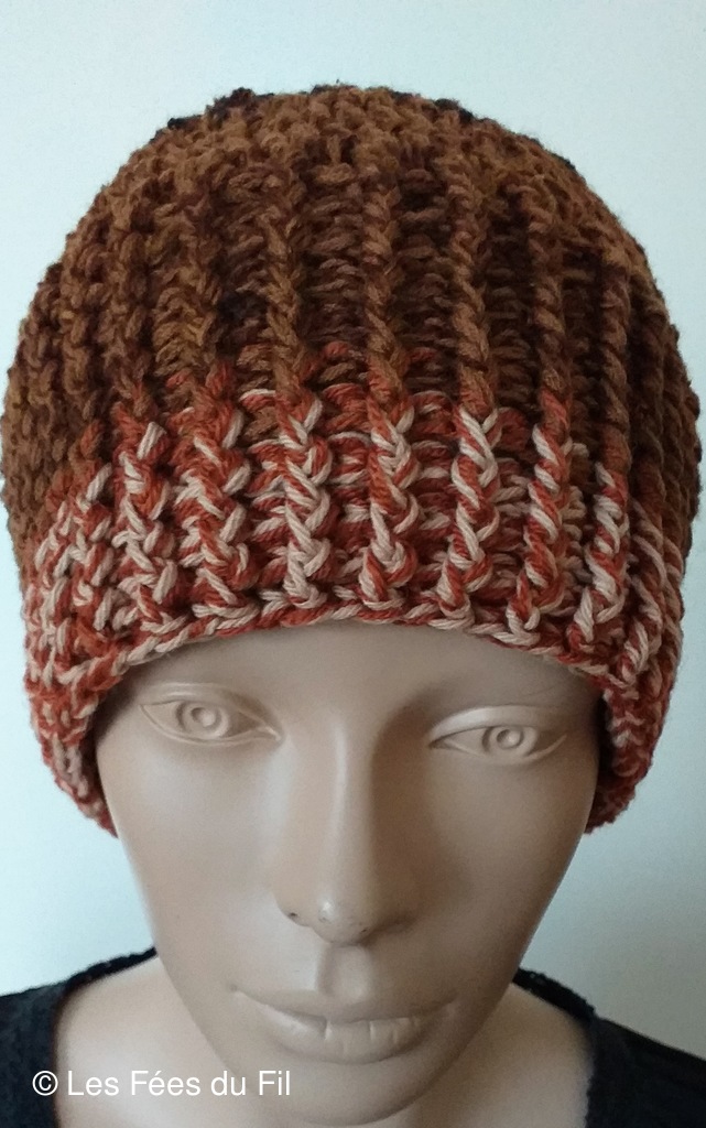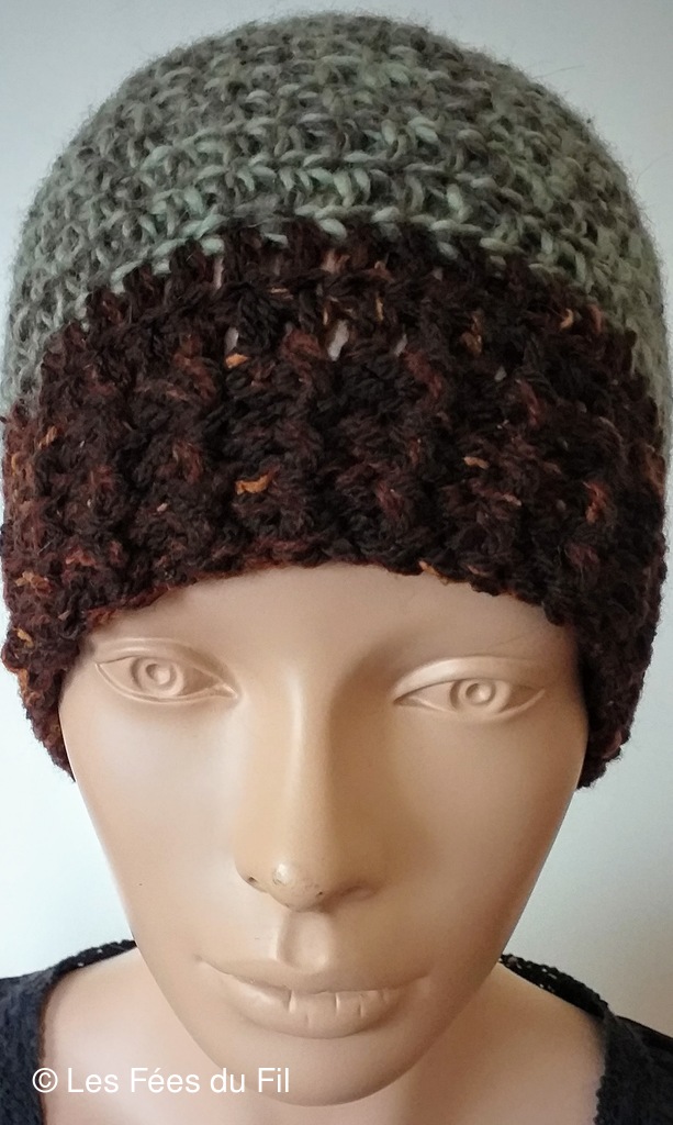 Bonnet réalisé au crochet tunisien par Frédéric L.