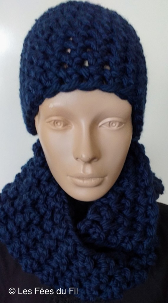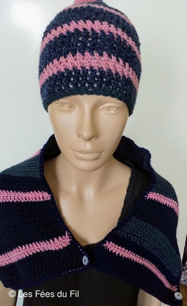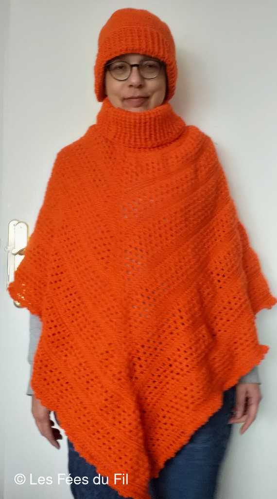 Poncho et bonnet réalisé par Patricia L.