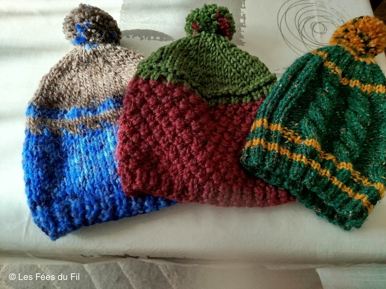 Série de bonnets réalisés par Isabelle D.