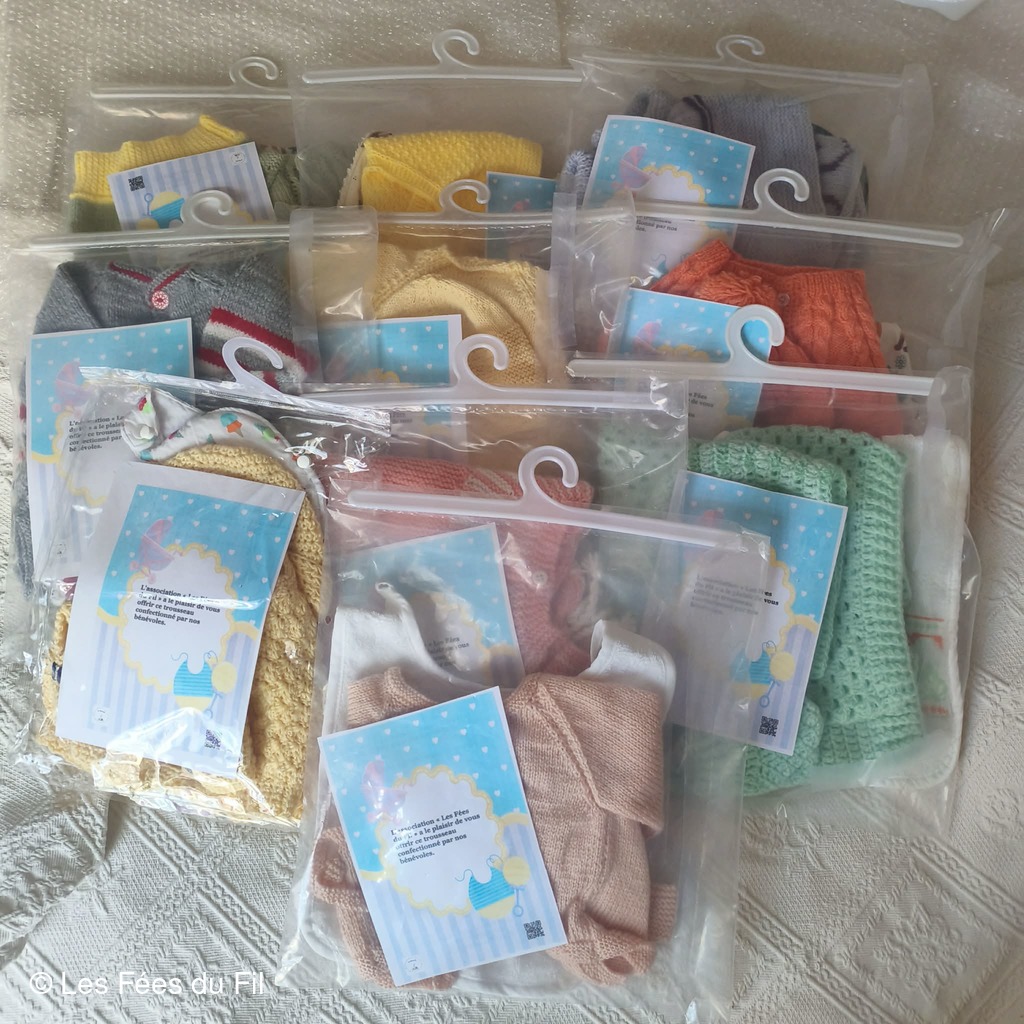 Tout au long de l'année nos bénévoles confectionnent de layette, des vêtements enfants ou adultes. Ces ouvrages sont remis à des structures venant en aide aux plus démunis.